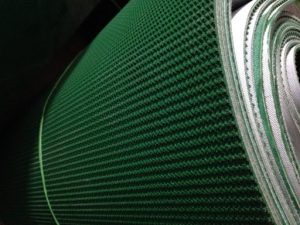 – Băng tải PVC xanh (Mặt trên trơn láng – mặt dưới là lớp bố dệt), có độ dày 1mm, 2mm, 3mm, 4,5mm và 5mm
